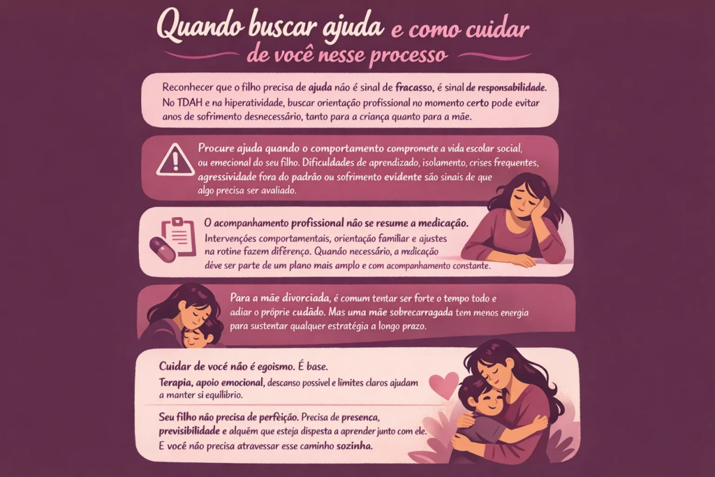 Reconhecer que o filho precisa de ajuda não é sinal de fracasso, é sinal de responsabilidade. No TDAH e na hiperatividade, buscar orientação profissional no momento certo pode evitar anos de sofrimento desnecessário, tanto para a criança quanto para a mãe.