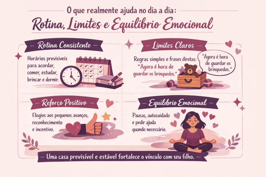 O que realmente ajuda no dia a dia, rotina, limites e equilíbrio emocional